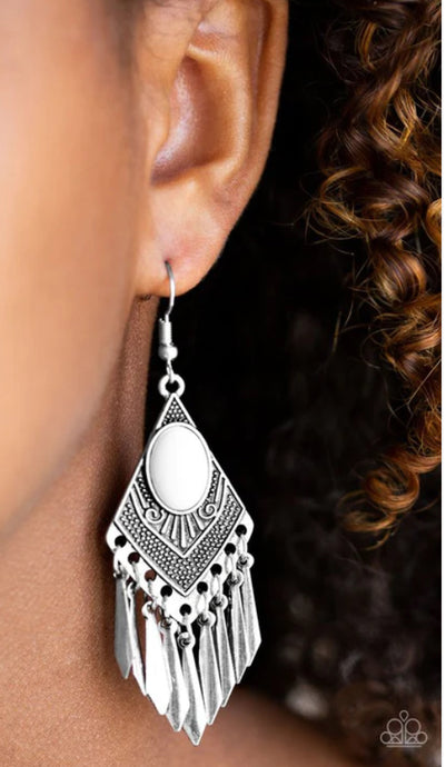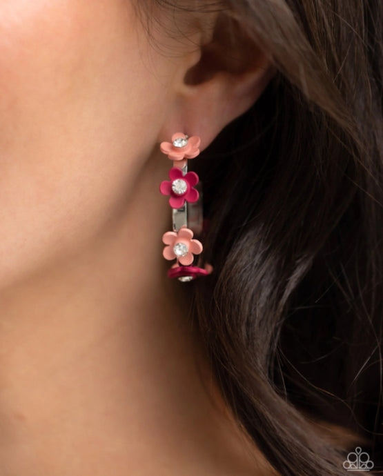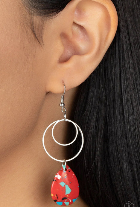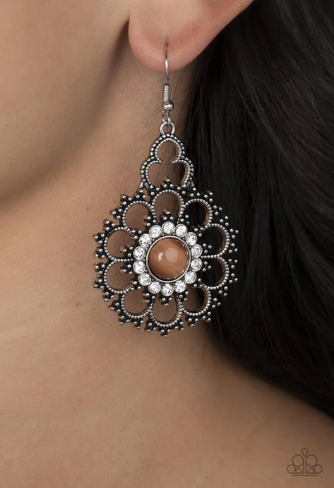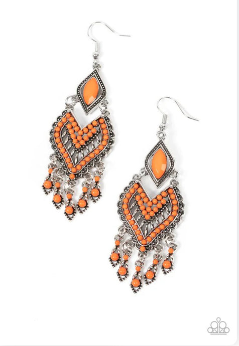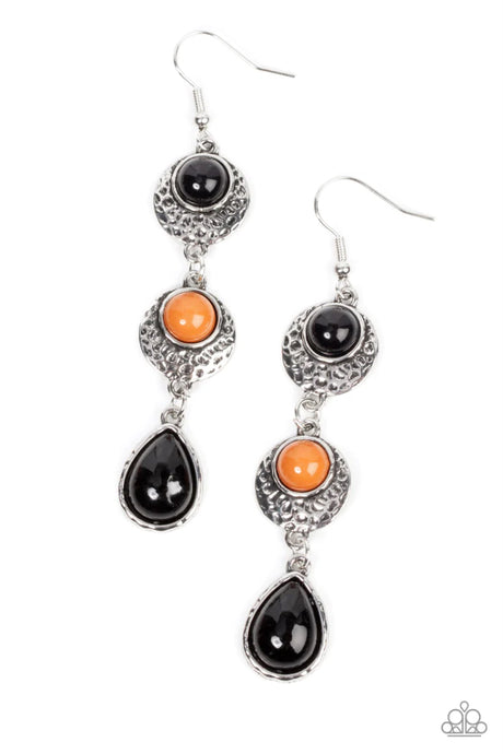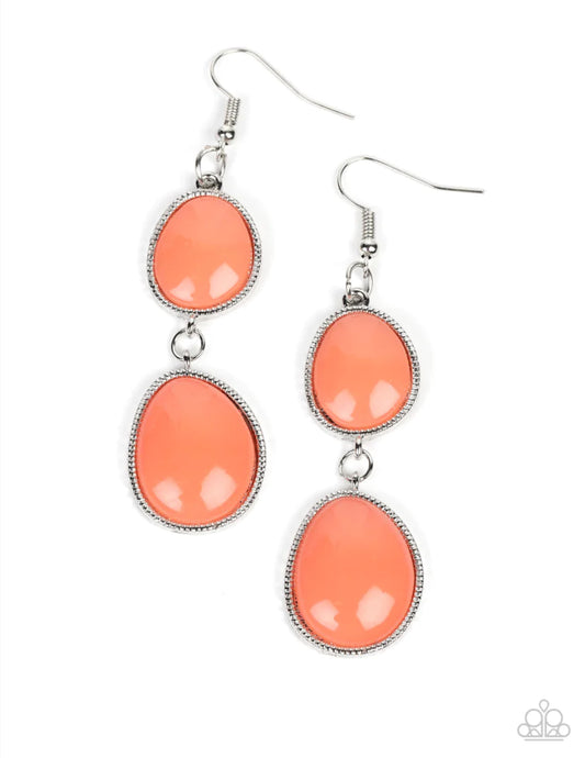 Floral Renaissance-Orange Cat’s Eye Silver Earrings- Paparazzi